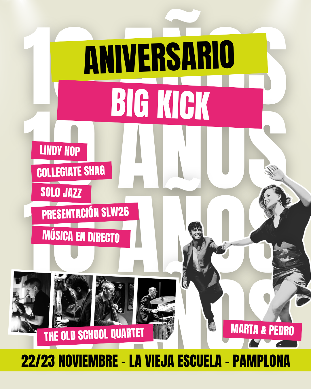 Contaremos con la visita especial de Pedro Vieira, que junto a Marta impartirá las clases de Lindy Hop. Además, el sábado por la tarde disfrutaremos del ritmo y la energía de The Old School Quartet, que nos harán mover los pies sin parar.